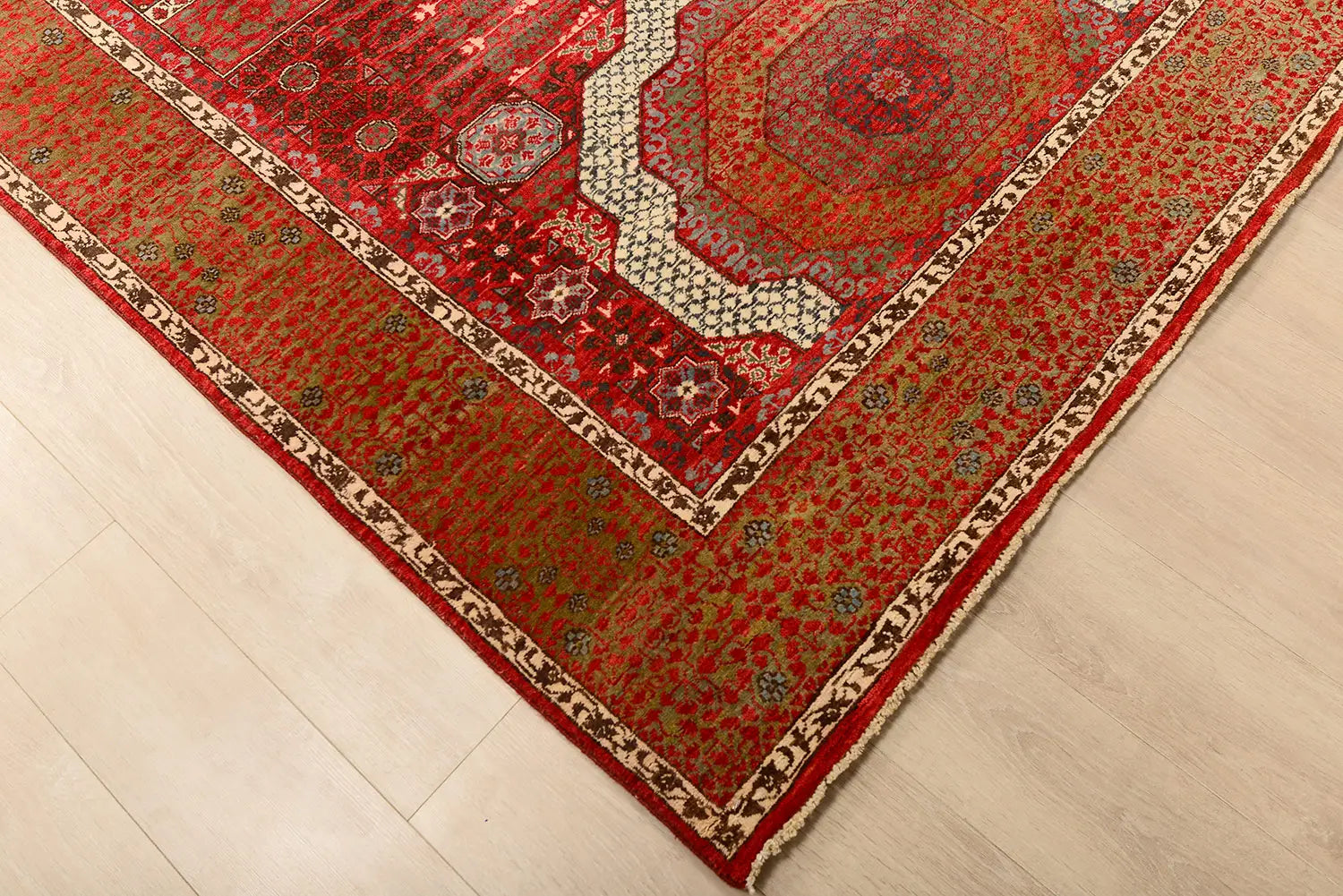 Crafted from premium natural wool, the rug offers softness, resilience, and long-term durability. The natural lanolin present in wool fibers enhances comfort while preserving the richness and strength of the woven structure over time.