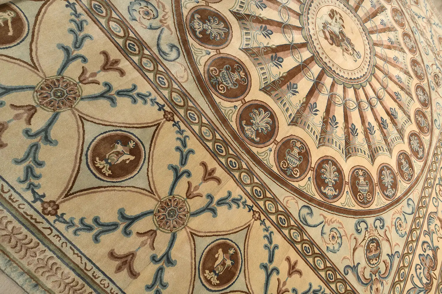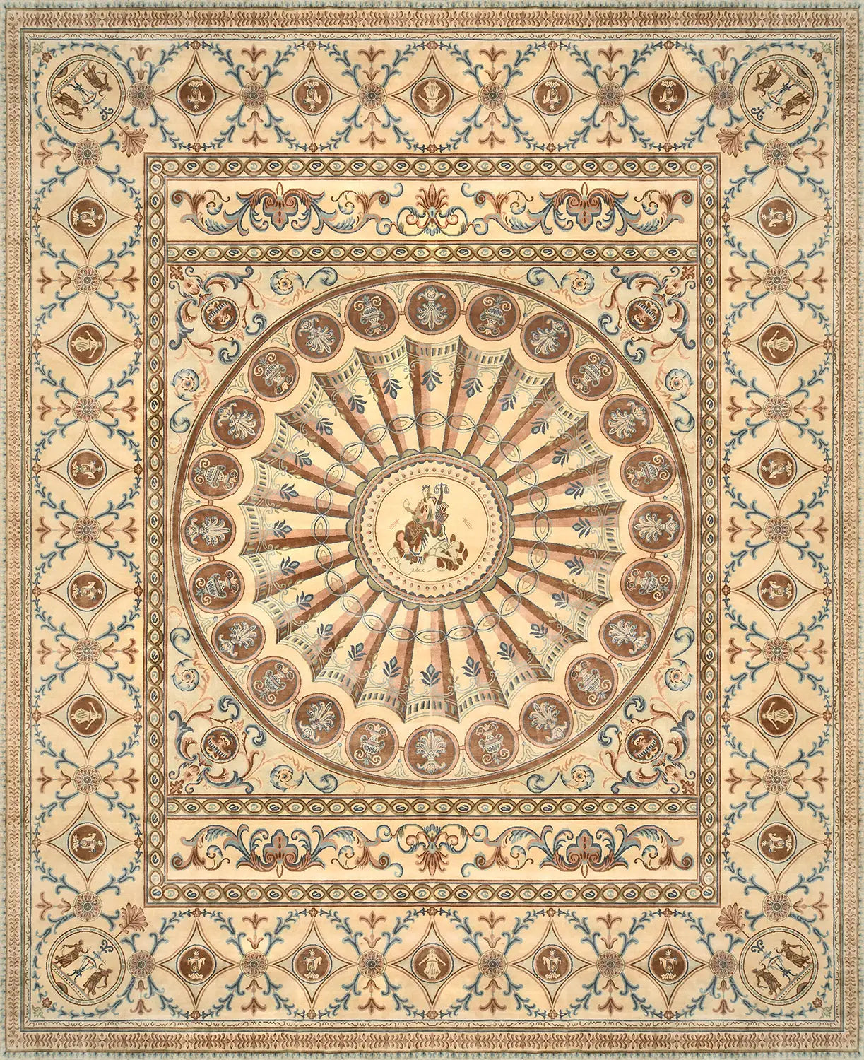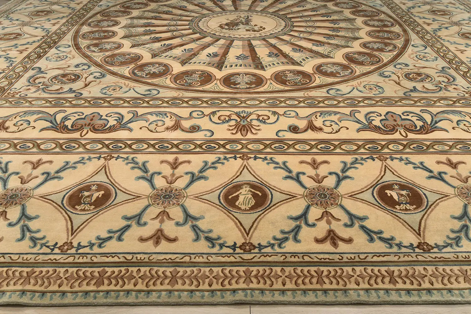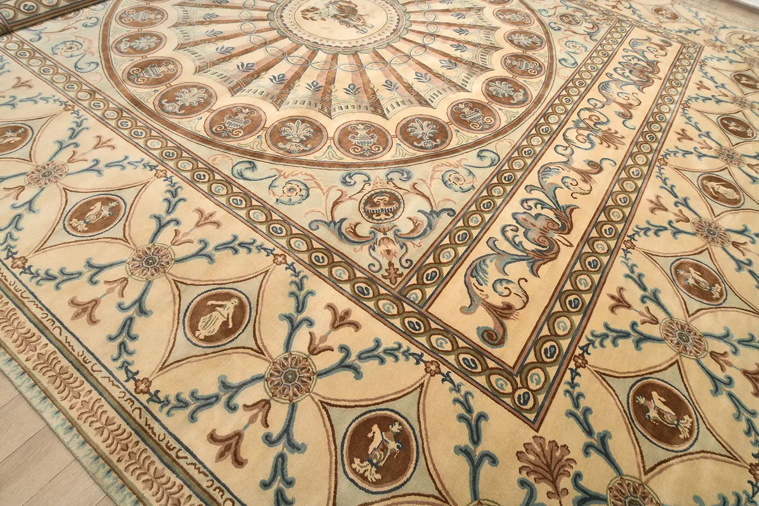 Woven by four мастers over twenty months using Nepalese knotting techniques, the rug reflects exceptional manual precision and large-scale craftsmanship. Its dense construction ensures strong structure, clear ornament definition, and enduring presence, making it ideal for grand living spaces, formal halls, and interiors built around heritage and distinction.