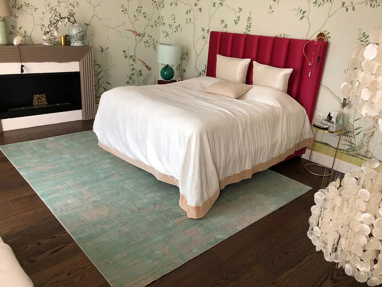Crafted from a premium blend of wool and silk, the rug offers both tactile comfort and subtle luminosity. Wool provides resilience, softness, and durability, while silk enhances selected elements of the design with delicate light reflection and refined depth.