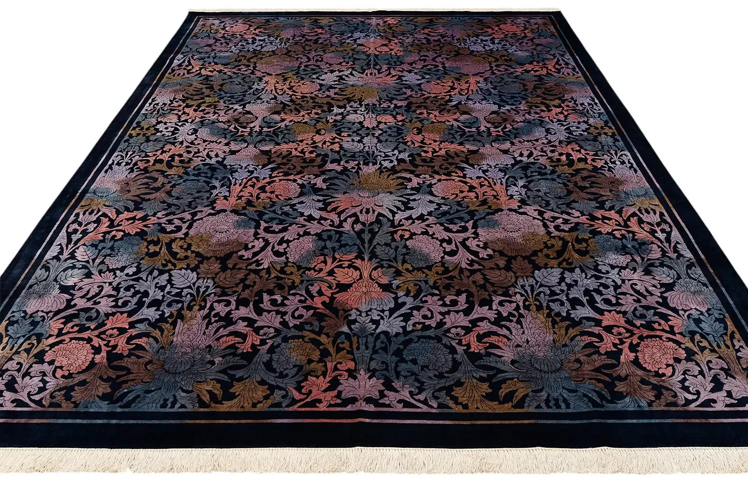 With a knot density exceeding 900,000 knots per square meter, every ornamental element appears remarkably precise and layered. The rug reflects exceptional handcraftsmanship and timeless decorative sophistication, making it a distinctive centerpiece for elegant interiors.