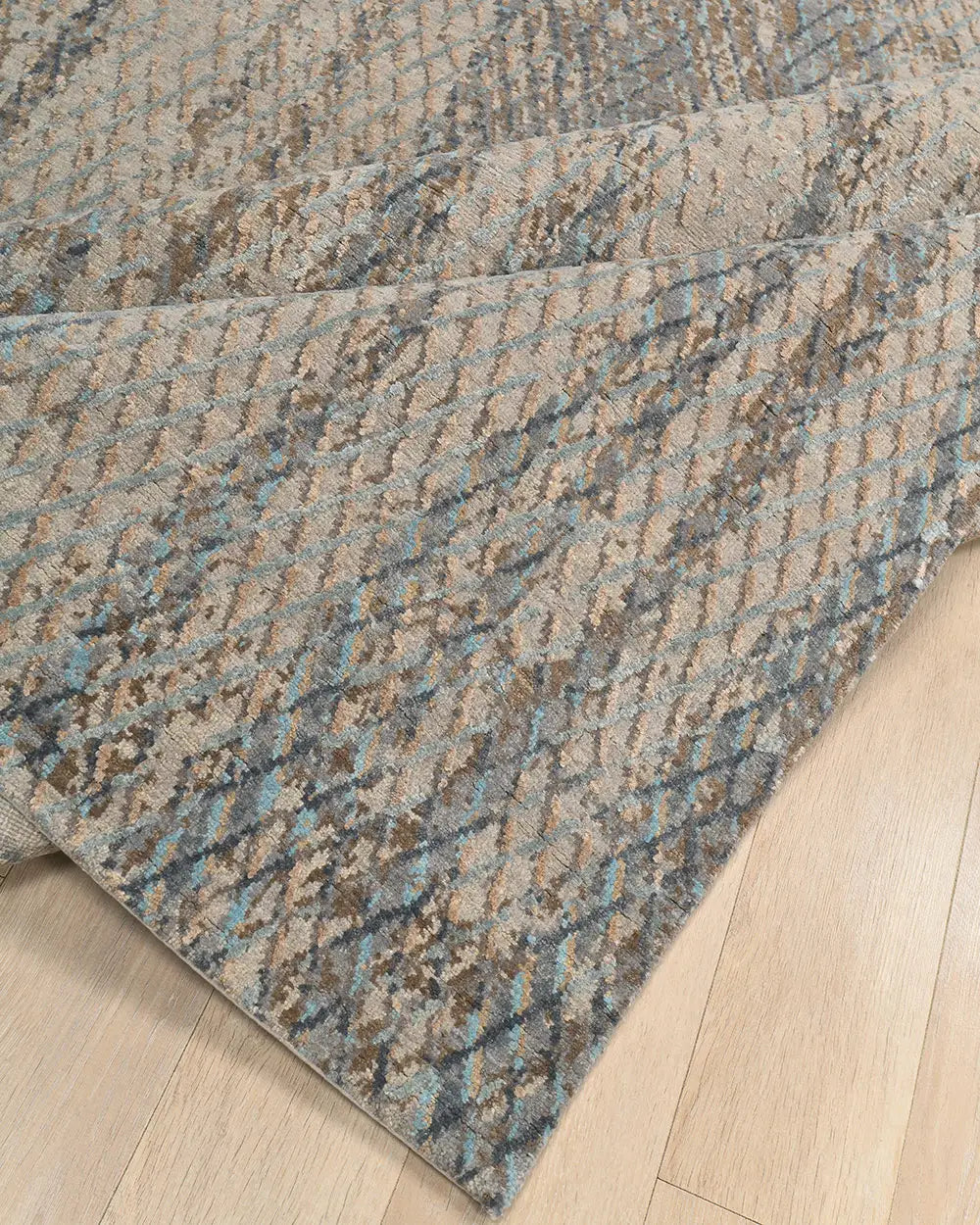 Crafted from a premium blend of wool and bamboo silk, the rug combines natural softness with durability and delicate luminosity. Wool provides warmth, elasticity, and long-term resilience, while bamboo silk introduces a soft reflective effect that enhances the depth of the pattern.
